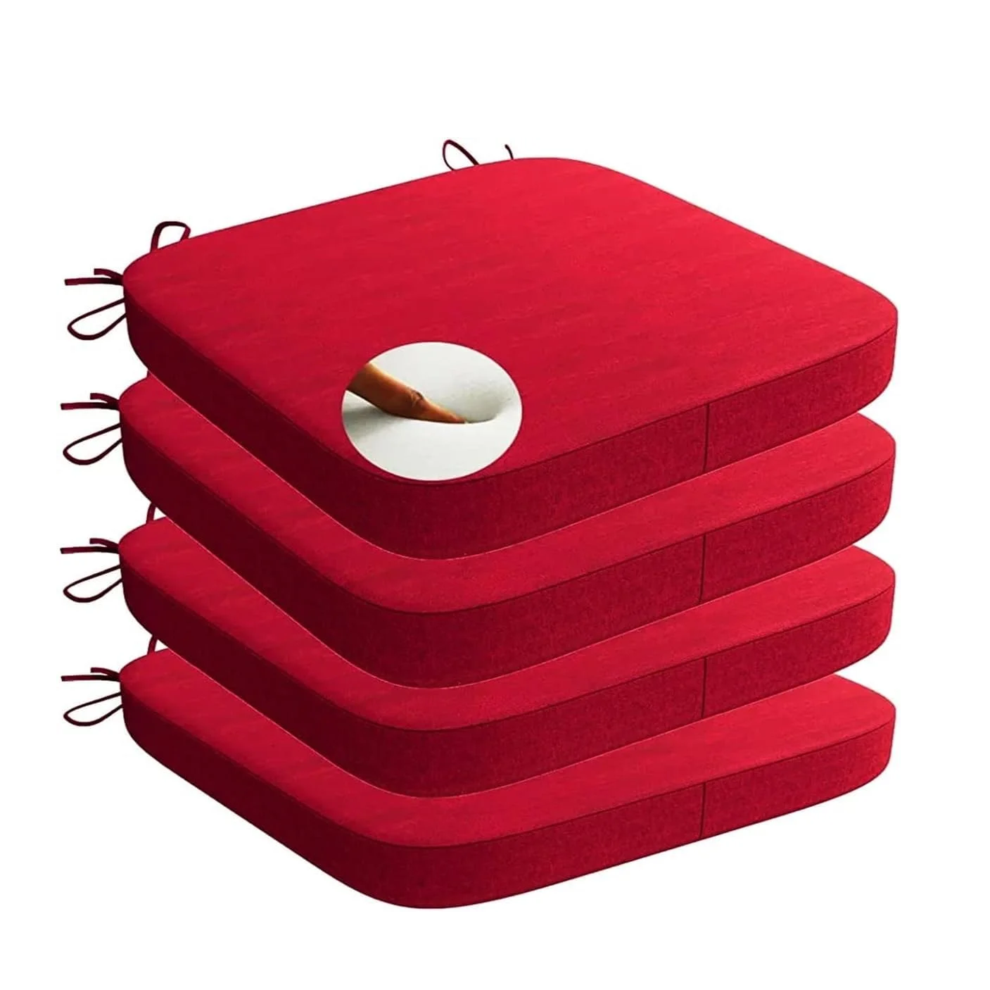 - Set of 4 Stylish Chair Pads:- Enhance the aesthetic of your kitchen or dining area with a set of four vibrant red chair cushions, each measuring 17″x17″. Elevate the look of your chairs while ensuring a comfortable seating experience.