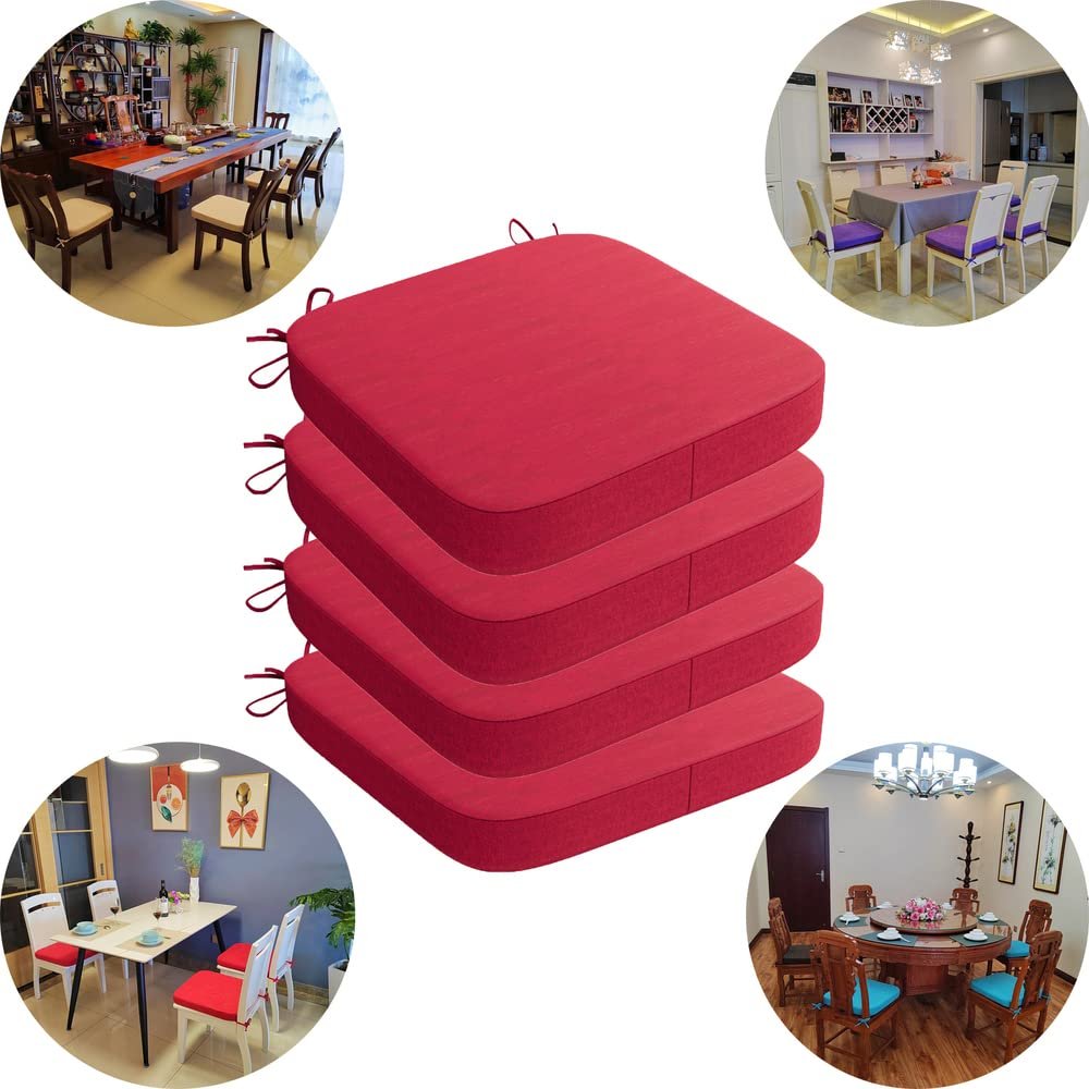 Cushions for Dining Chairs 4 Pack - Memory Foam Chair Pads with Ties and Non-Slip Backing - Seat Cushion for Kitchen Chair